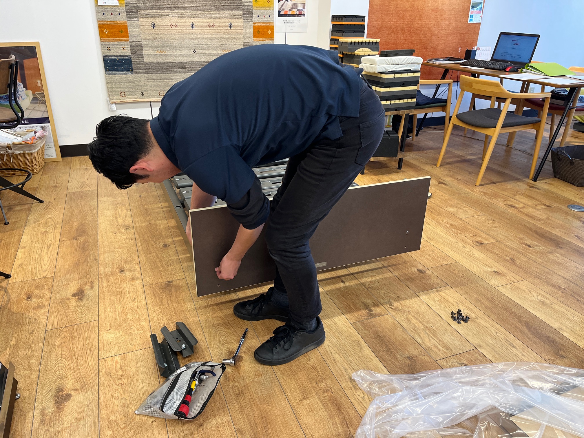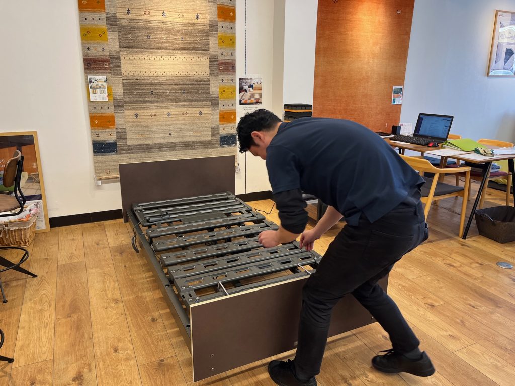 今回、ベッドを組み立てるためにわざわざ名古屋から来てくれました。