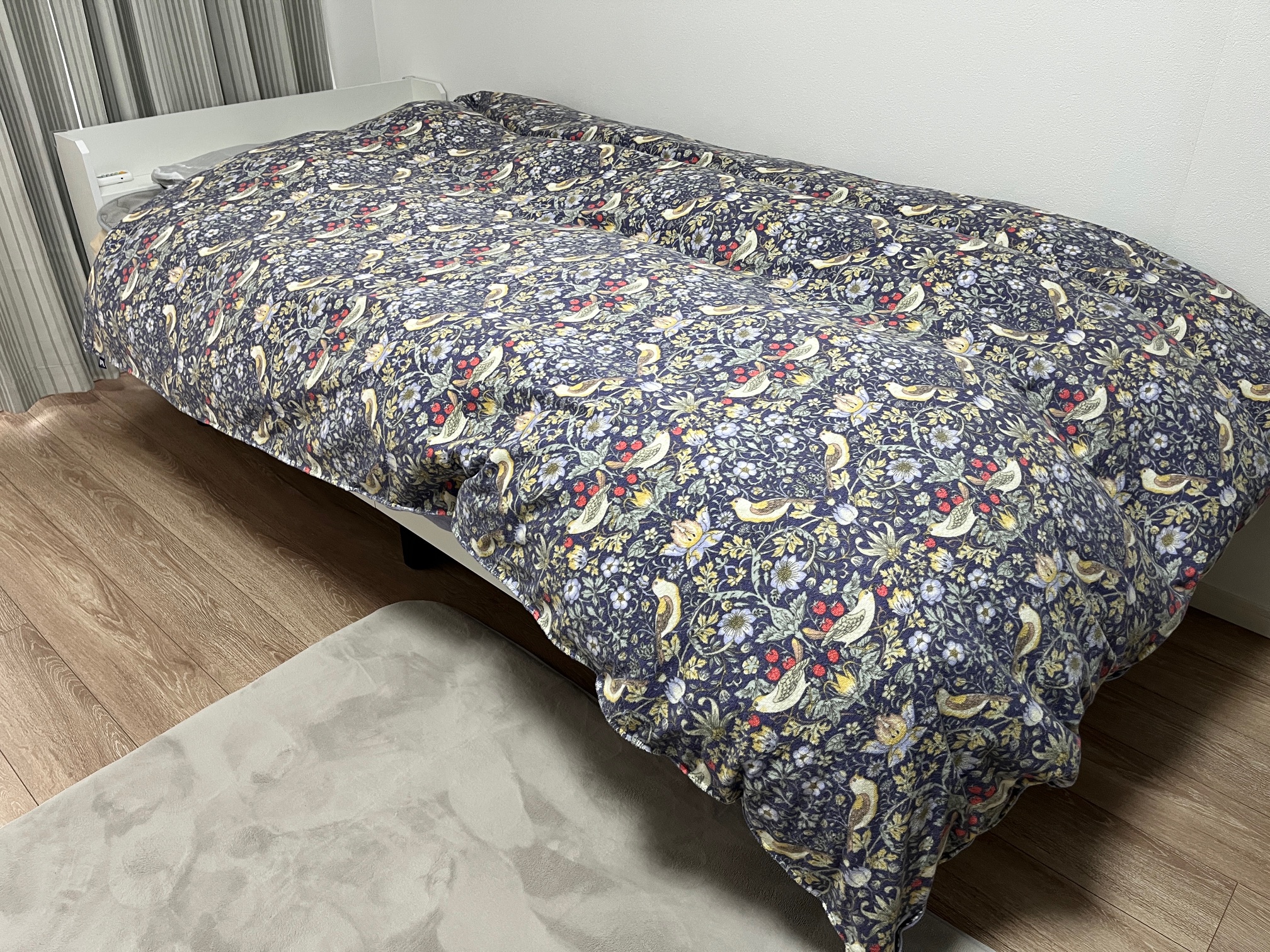 名古屋市S様邸、ベッドマットレス・ゴア羽毛ふとん・オーダーメイド枕など寝具一式を納品♪ウィリアムモリスのあったかカバーがポイント♪