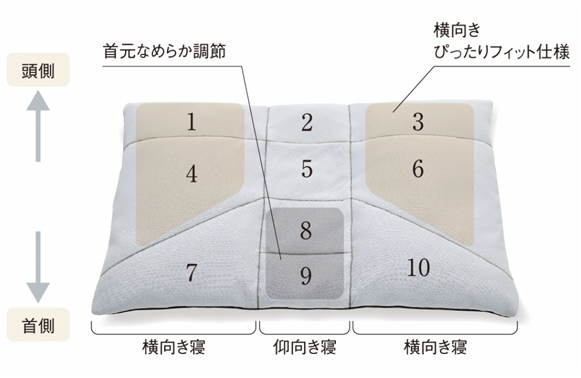 まず、プレミアムオーダーメイド枕はレギュラーに比べて幅が広くなり、10個の部屋に細かく分かれていますので、より細かな調整が可能です。