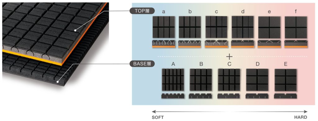 それに対して、プレミアムオーダーマットレスは、上層6種類、下層5種類の2層のパーツの組み合わせから、一人ひとりに合った寝心地を作ります。