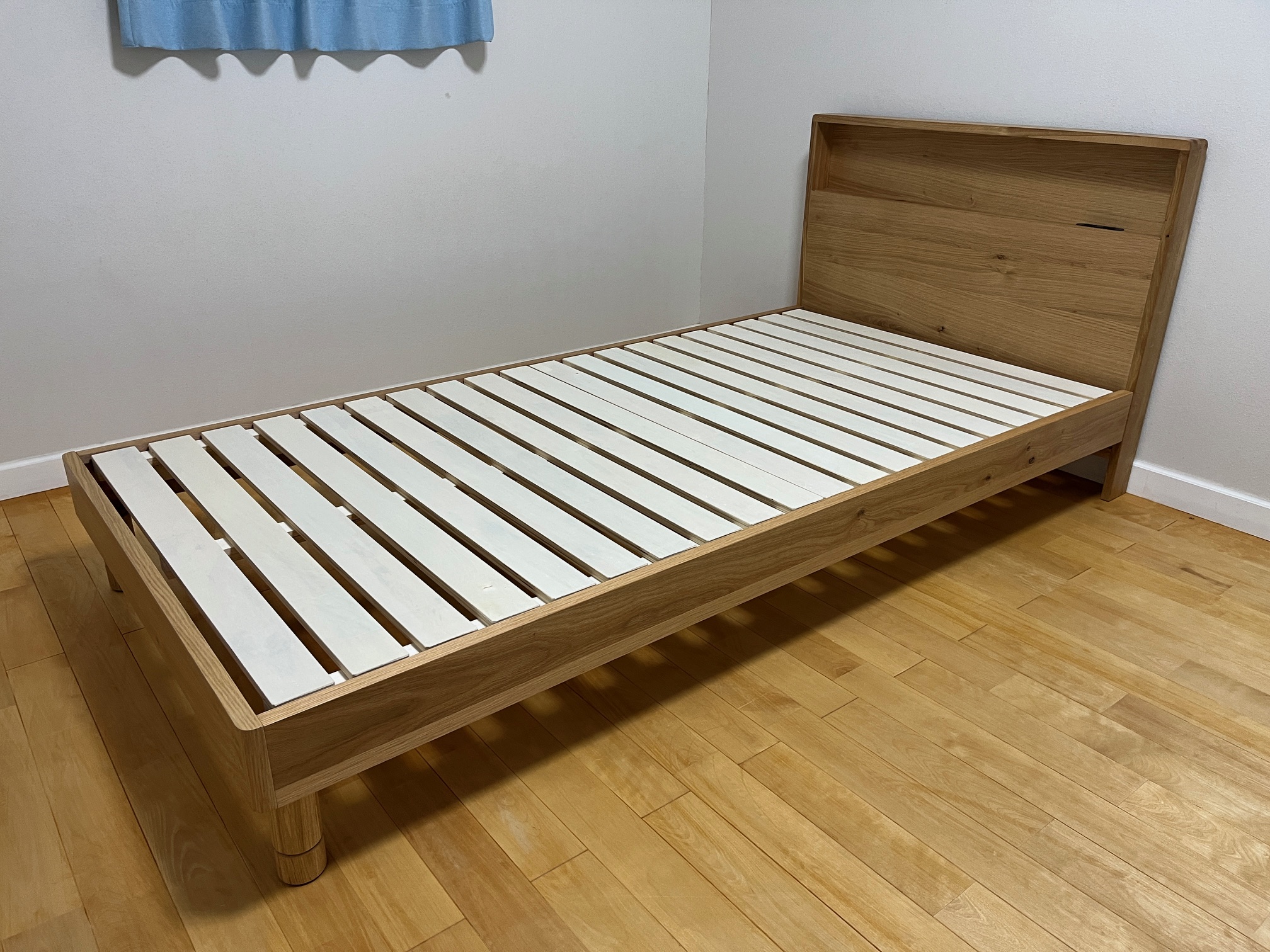 今までダブルサイズのベッドで寝ていらっしゃいましたが、お一人で寝ておりそんなに広いベッドは必要がなく、お部屋も広く使いたいからとシングルサイズへとお買い替え頂きました。