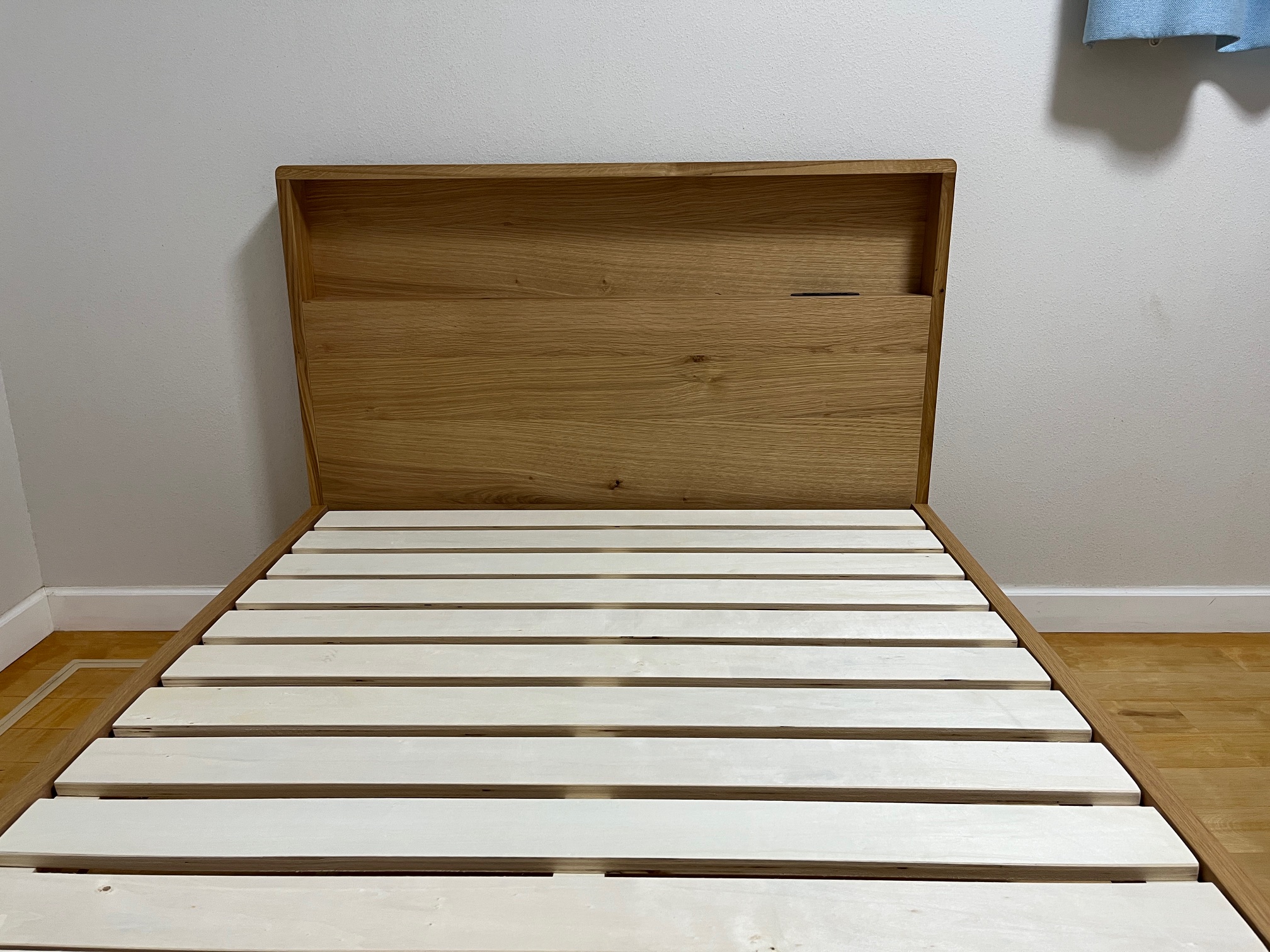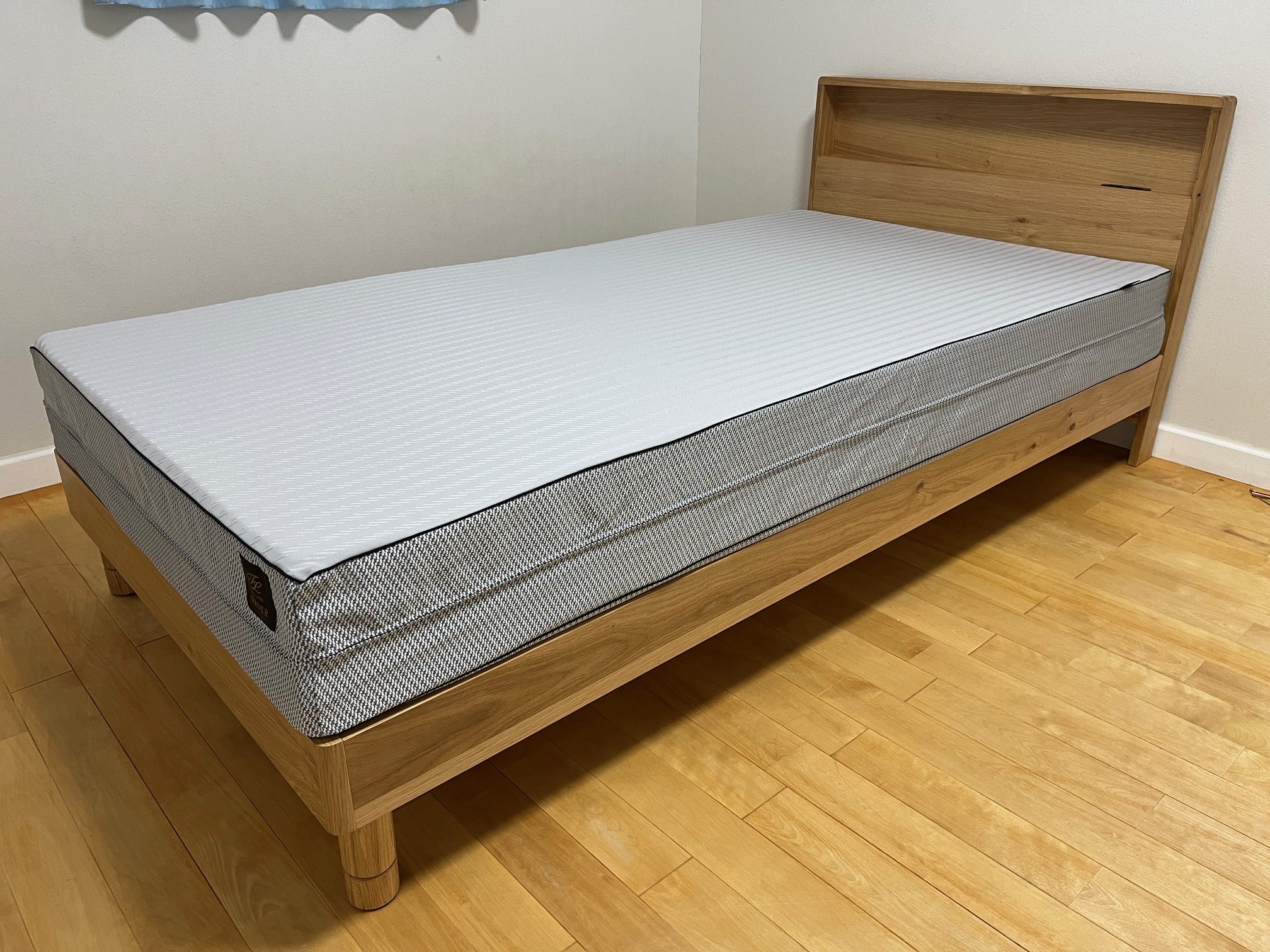 岡崎市I様、オーダーメイドマットレス&ベッドフレームをお届け。引き出し付きダブルベッドからのお買い替え。