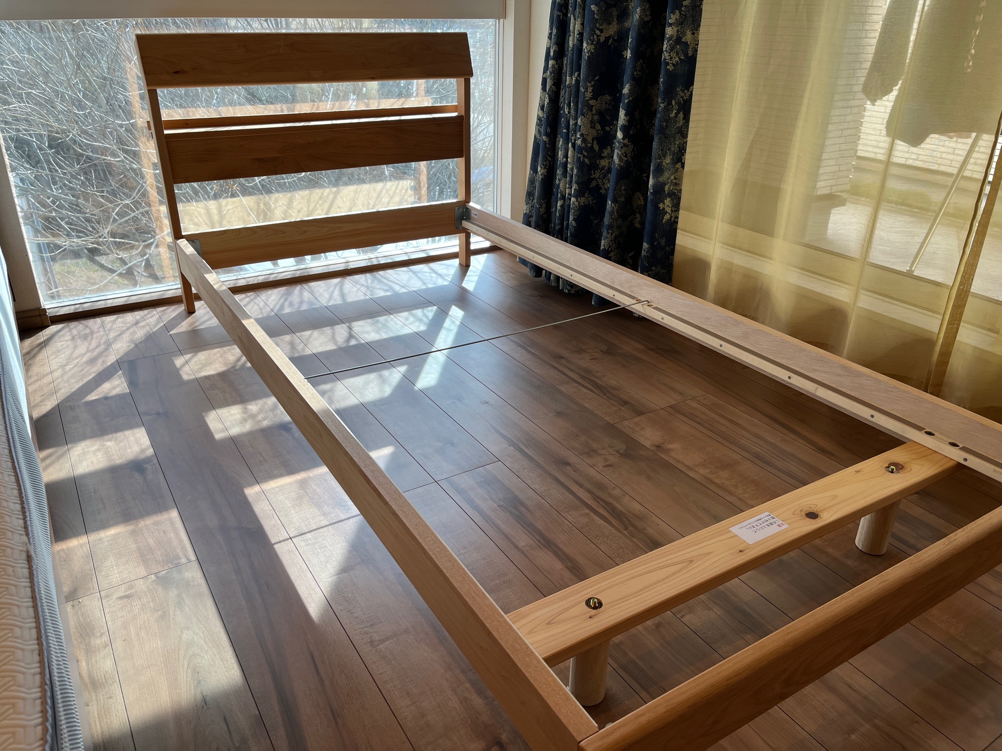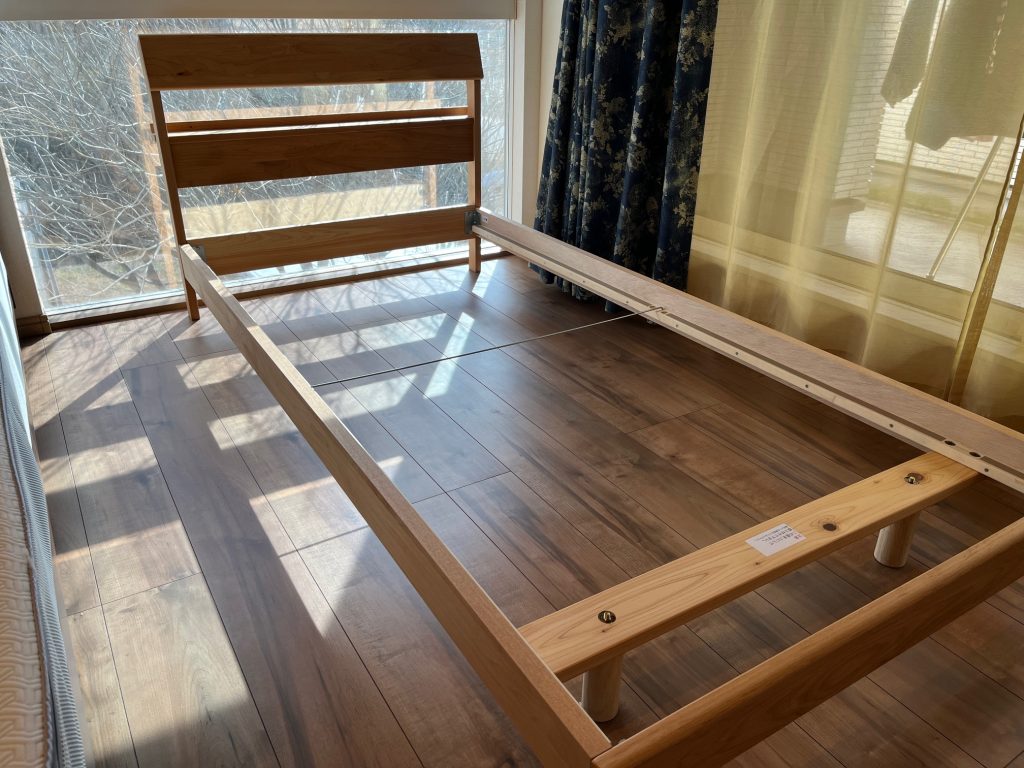 色々見て頂き、選んで頂いたのはアルダー無垢材を使ったお洒落なベッドフレーム。