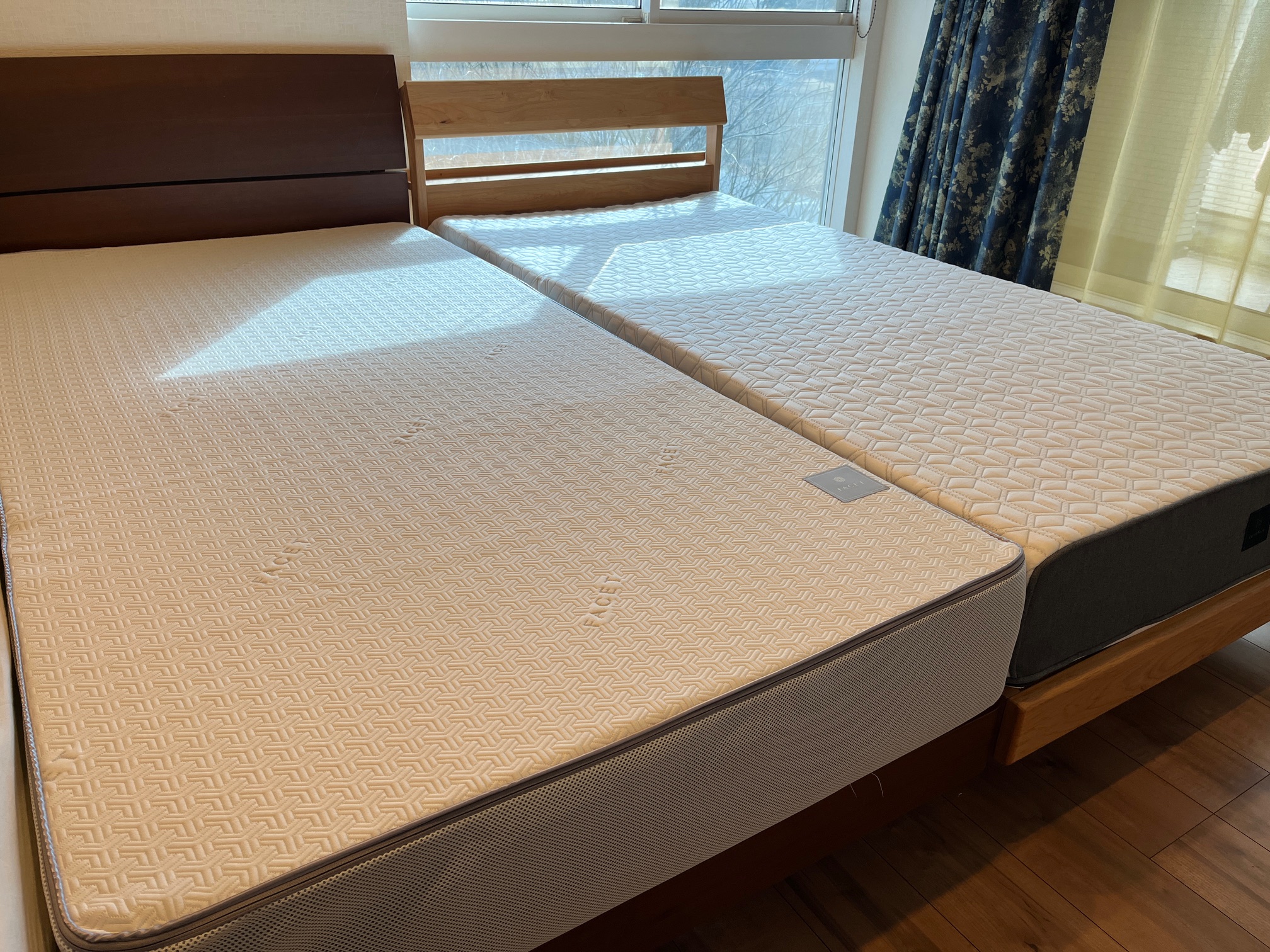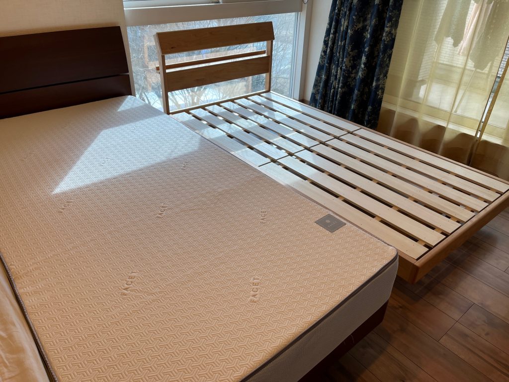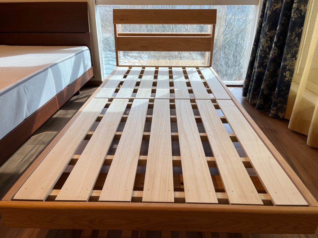 アルダー材ベッドの上には同じくイノアックの「ラグフォート」マットレスを乗せました。